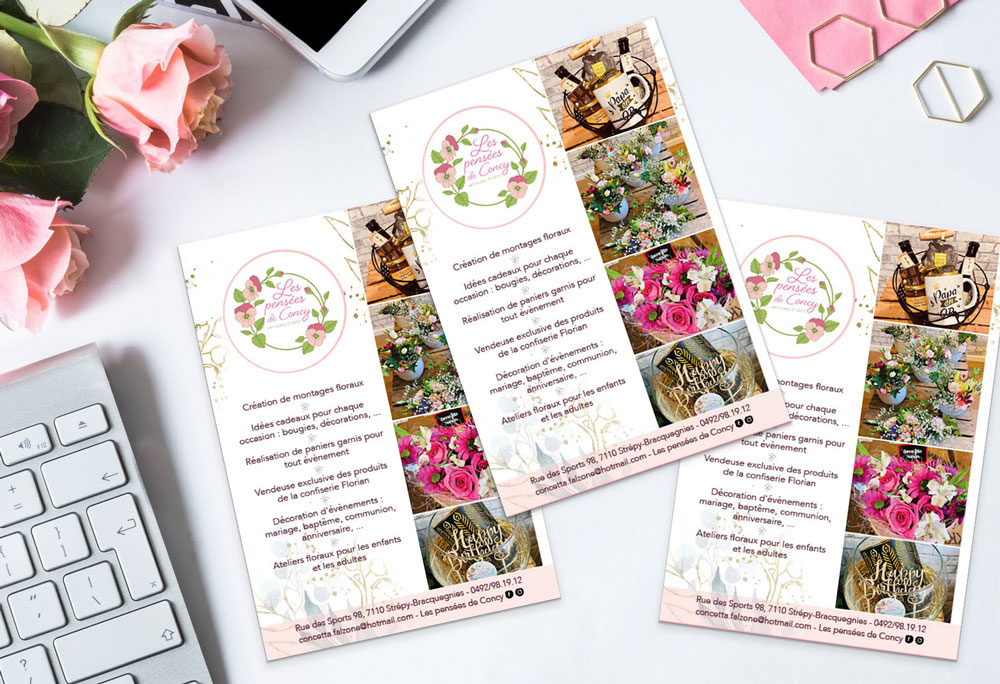 Création de supports de communication : flyer, brochure, carte de visite, roll up…