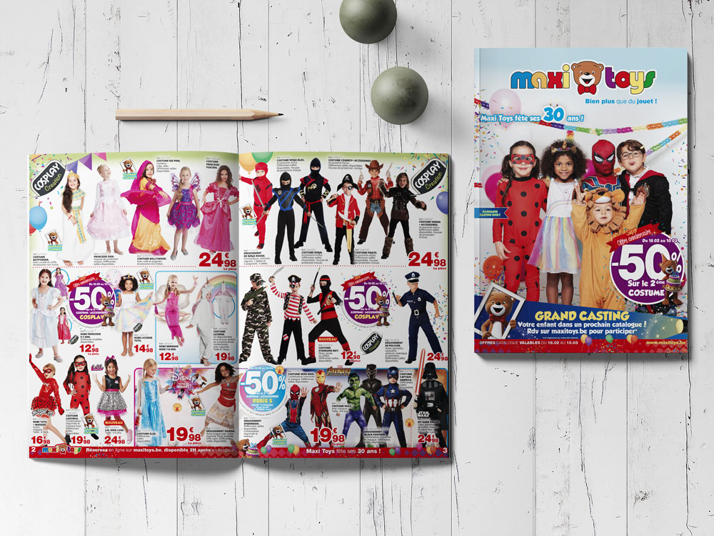 Réalisations de catalogues, et dépliant mensuel.